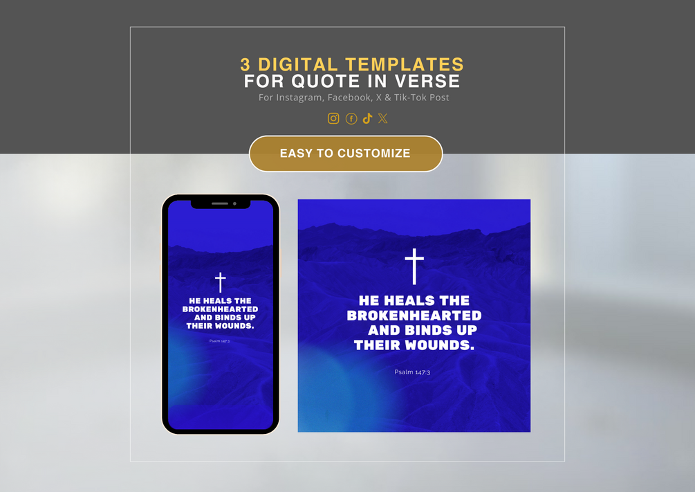 A set of 3 professional Bible verse quote templates designed to help you share the Word on social media