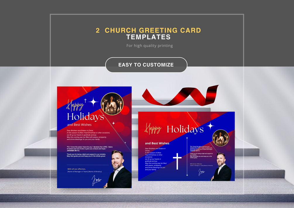 A set of 2 professional church greeting card templates, ideal for sending blessings, gratitude, or well wishes during holidays, events, and special occasions